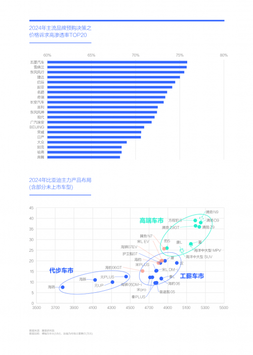 2024年比亚迪积极巩固在有强烈价格诉求的工薪与代步两大车市的领先优势,2025年将大规模发力高端车市