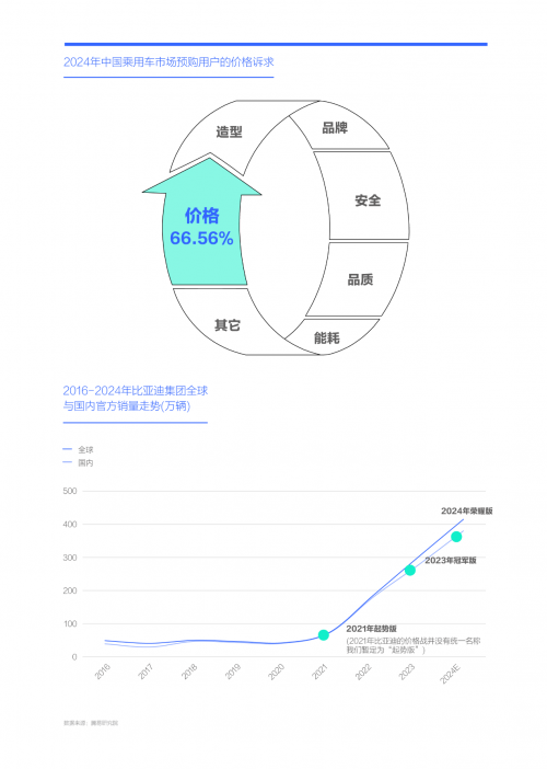 2024年中国购车用户的价格诉求仍高达66.56%,为近四年比亚迪通过发动大规模价格战寻求突围提供了肥沃土壤